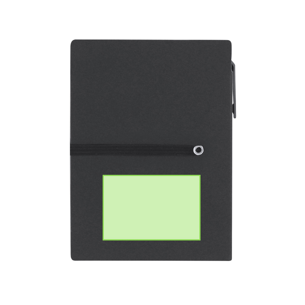Notepad met stijve PU-hoezen. Bevat 80 vellen in een lijnopstelling, elastiek om vast te maken, een stoffen bladwijzer en bijpassende pen.