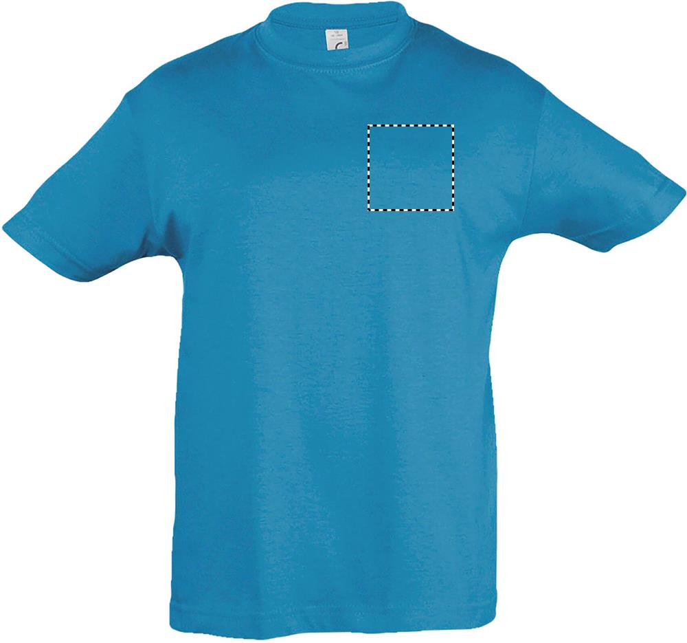SOL'S REGENT Kinder t-shirt 150g/m². 100% halfgekamd katoen. Verstevigingsband in de nek. Geribde halsboord met elastaan. Met zijnaad (2-6 jaar) of rondgebreid. (vanaf 8 jaar). Maten - 2 jr: 86-94cm (M), 4 jr: 96-104cm (L), 6 jr: 106-116cm (XL), 8 jr: 118-128cm (XXL), 10 jr: 130-140cm (3XL), 12 jr: 142-152cm (4XL).
