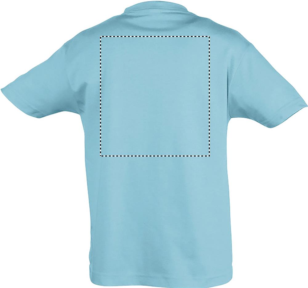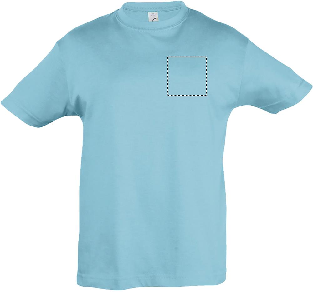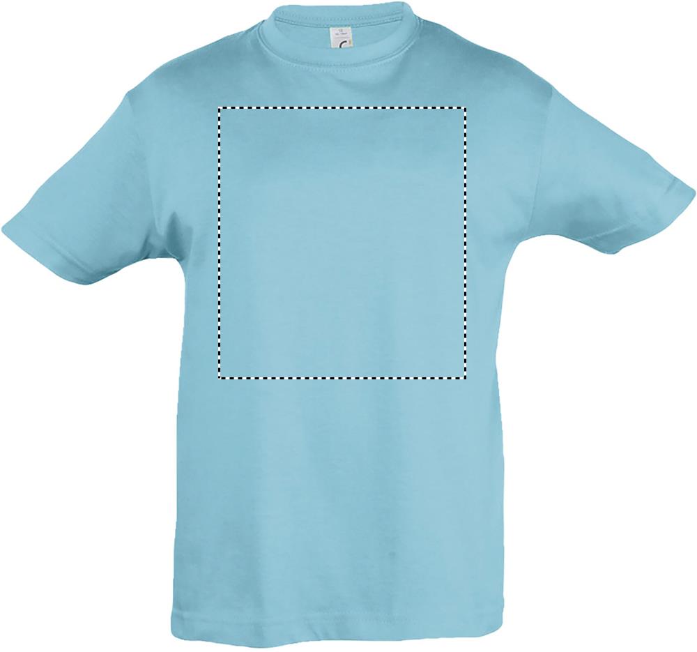 SOL'S REGENT Kinder t-shirt 150g/m². 100% halfgekamd katoen. Verstevigingsband in de nek. Geribde halsboord met elastaan. Met zijnaad (2-6 jaar) of rondgebreid. (vanaf 8 jaar). Maten - 2 jr: 86-94cm (M), 4 jr: 96-104cm (L), 6 jr: 106-116cm (XL), 8 jr: 118-128cm (XXL), 10 jr: 130-140cm (3XL), 12 jr: 142-152cm (4XL).