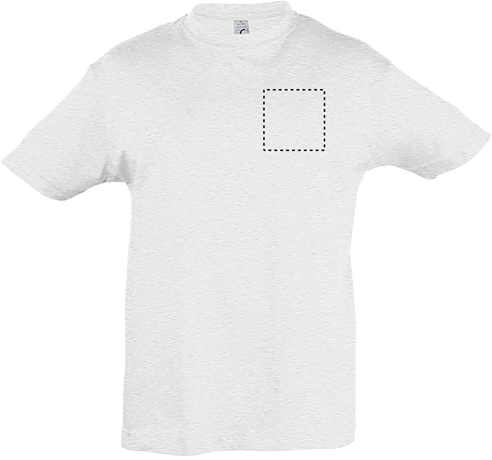 SOL'S REGENT Kinder t-shirt 150g/m². 100% halfgekamd katoen. Verstevigingsband in de nek. Geribde halsboord met elastaan. Met zijnaad (2-6 jaar) of rondgebreid. (vanaf 8 jaar). Maten - 2 jr: 86-94cm (M), 4 jr: 96-104cm (L), 6 jr: 106-116cm (XL), 8 jr: 118-128cm (XXL), 10 jr: 130-140cm (3XL), 12 jr: 142-152cm (4XL).