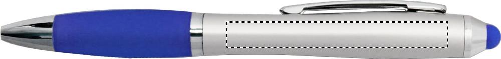 Kunststof balpen met zachte grip en bijpassende touch tip. Draaimechanisme en blauwe inkt.