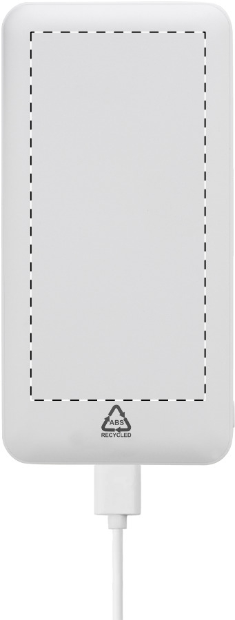Gerecycleerde ABS-krachtbank met batterij van 20.000 mAh. Met 2 USB - en 1 USB-C-opladerpoorten. Micro USB en USB-C ingangspoorten. Inclusief USB lader kabel.