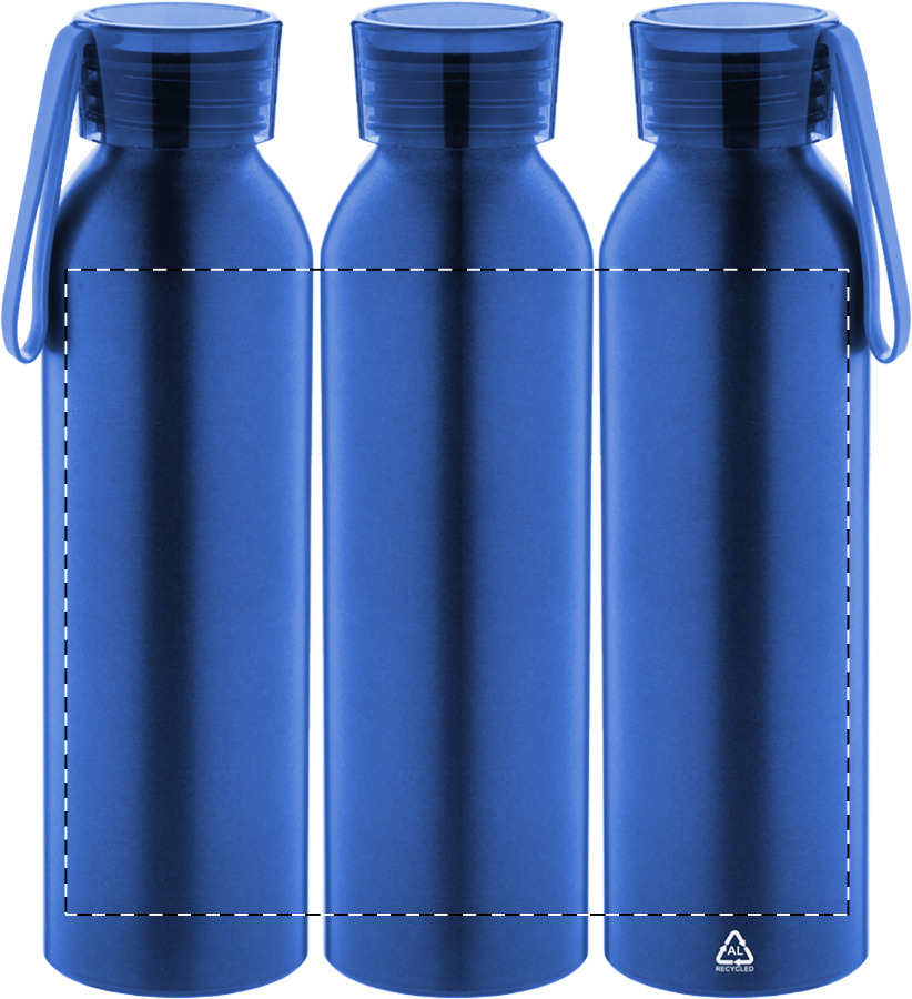 Fles van gerecycled aluminium met draagdeksel, 650 ml.