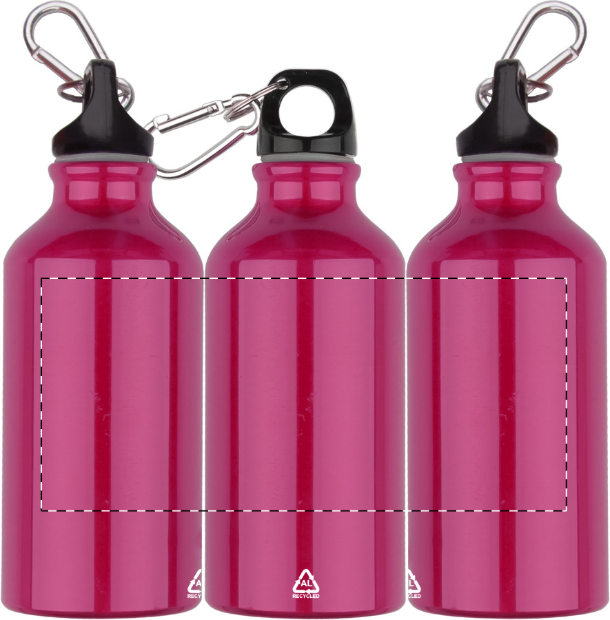 Fles van gerecycled aluminium met karabijnhaak van gerecycled aluminium, 400 ml.