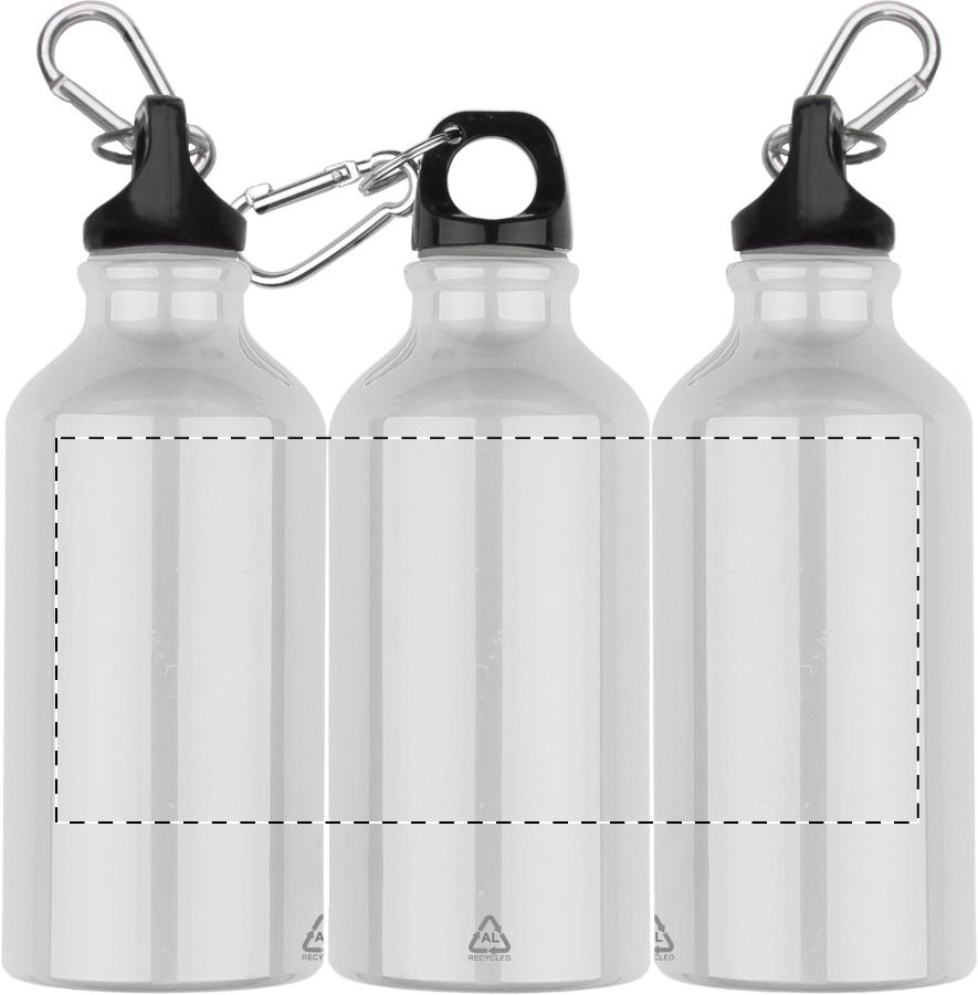 Fles van gerecycled aluminium met karabijnhaak van gerecycled aluminium, 400 ml.