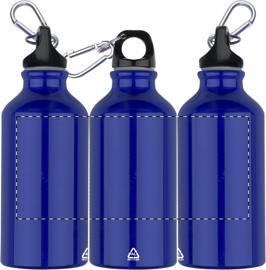 Fles van gerecycled aluminium met karabijnhaak van gerecycled aluminium, 400 ml.