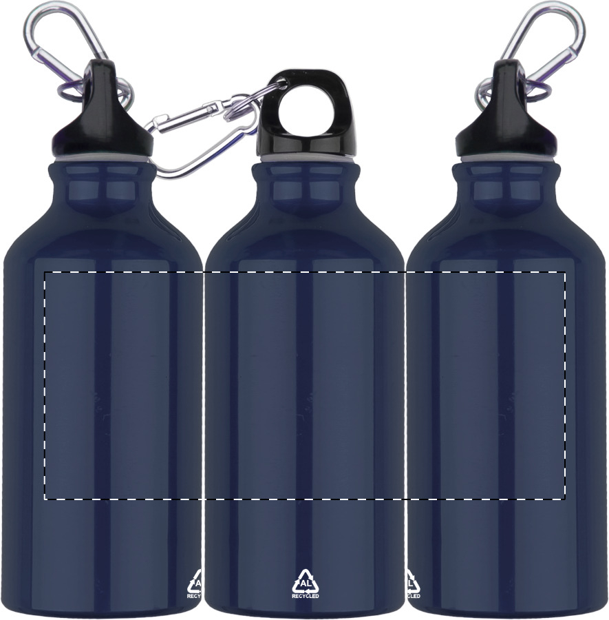 Fles van gerecycled aluminium met karabijnhaak van gerecycled aluminium, 400 ml.