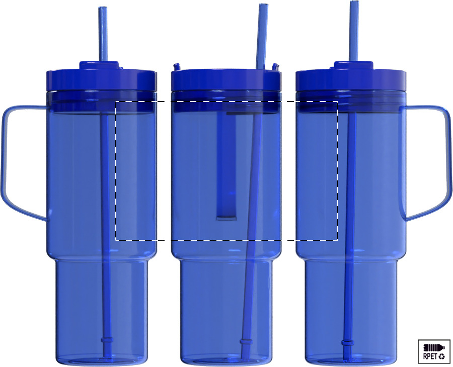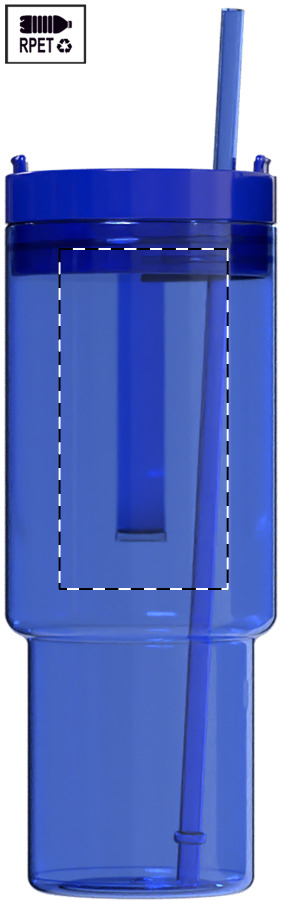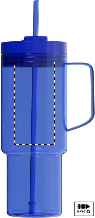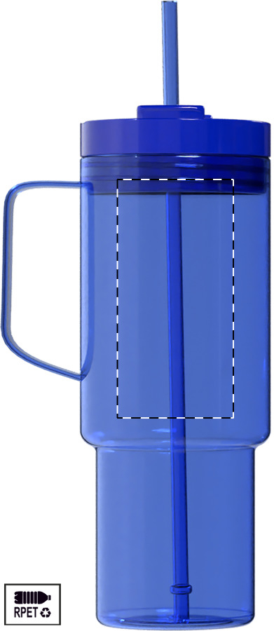 Enkelwandige, RPET reisbeker met bijpassende kleur PP drinkdeksel en rietje. 1200 ml.