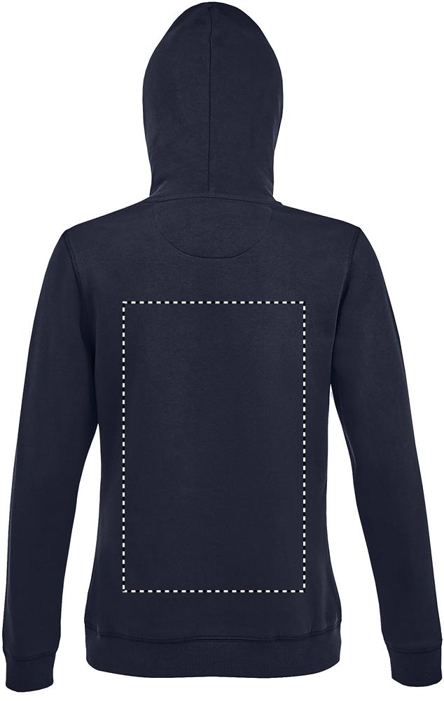 SOL'S SPENCER dames sweater 280g. Buidelzak. Gesneden en gestikt. Gevoerde capuchon met trekkoord. 2x2 geribde manchetten en boord. Halve maan binnenzijde kraag. Schouder tot schouder nekband. Materiaal: 80% rondgebreid katoen - 20% polyester. Geborstelde voering. Buitenkant: 100% katoen. OEKO-TEX®. Alleen verkocht inclusief bedrukking.