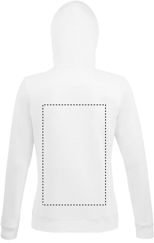 SOL'S SPENCER dames sweater 280g. Buidelzak. Gesneden en gestikt. Gevoerde capuchon met trekkoord. 2x2 geribde manchetten en boord. Halve maan binnenzijde kraag. Schouder tot schouder nekband. Materiaal: 80% rondgebreid katoen - 20% polyester. Geborstelde voering. Buitenkant: 100% katoen. OEKO-TEX®. Alleen verkocht inclusief bedrukking.