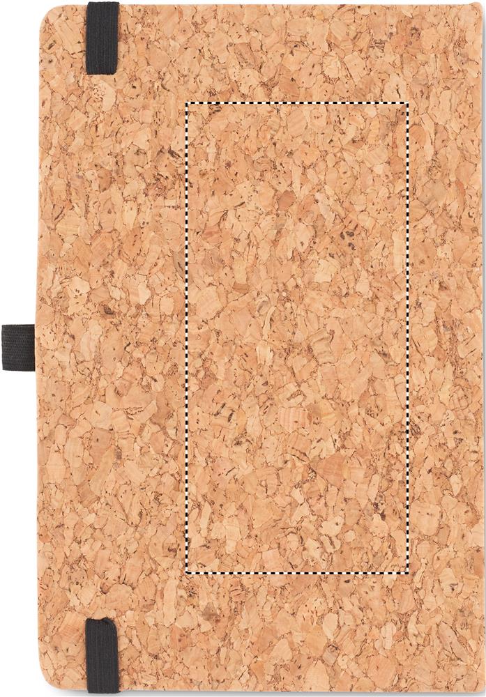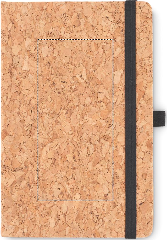 A5 notitieboek van kurk met bijpassende pen. Harde kurken kaft. Ingebonden. 160 pagina's gelinieerd gerecycled papier (80 vellen). Elastische sluitingsband en penhouder. Bijpassende balpen met drukknop, kurken houder en 50% tarwestro en 50% PP details. Verpakt in een giftbox.