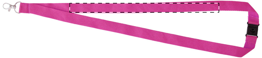 Polyester lanyard met veiligheidssluiting, kunststof gesp en karabijnhaak.