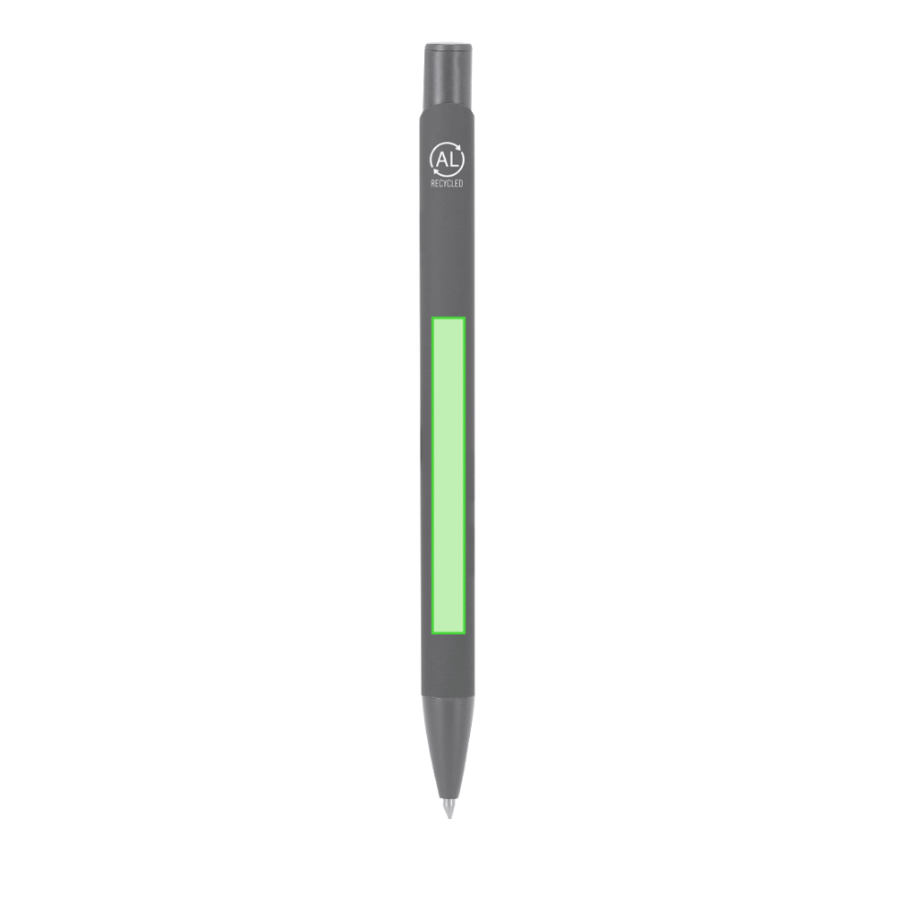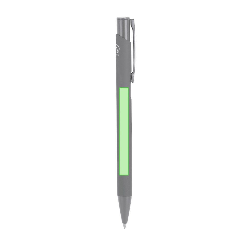 Elegante premium set die bevat: Recycled Aluminium Pen met matte zwarte afwerking, drukknopmechanisme en blauwe inkt. Met clip en ABS gepolijste neus. Inclusief gerecycled aluminium badge.Elegante sleutelhanger met lint gemaakt van PU, polyester en chromen accessoires.