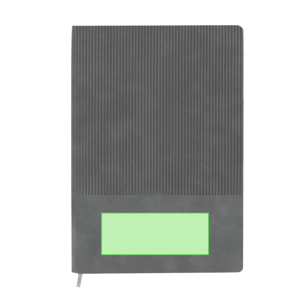 Set notitieblok en pen gemaakt van gerecycled PU en gerecycled aluminium. De set bevat: - Notitieblok gemaakt van gerecyclede PU, met flexibele hoezen. Bevat 96 crèmekleurige pagina's met lijnen, een bijpassende bladwijzer. Met PU Recycled Badge. - Gerecycled aluminium pen, met een rubberen afwerking. Hij heeft een clip, drukknopmechanisme en blauwe inkt. Inclusief gerecycled aluminium badge.