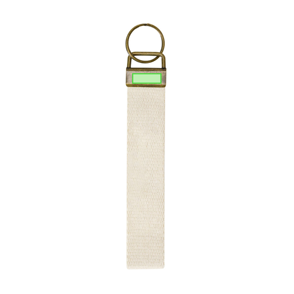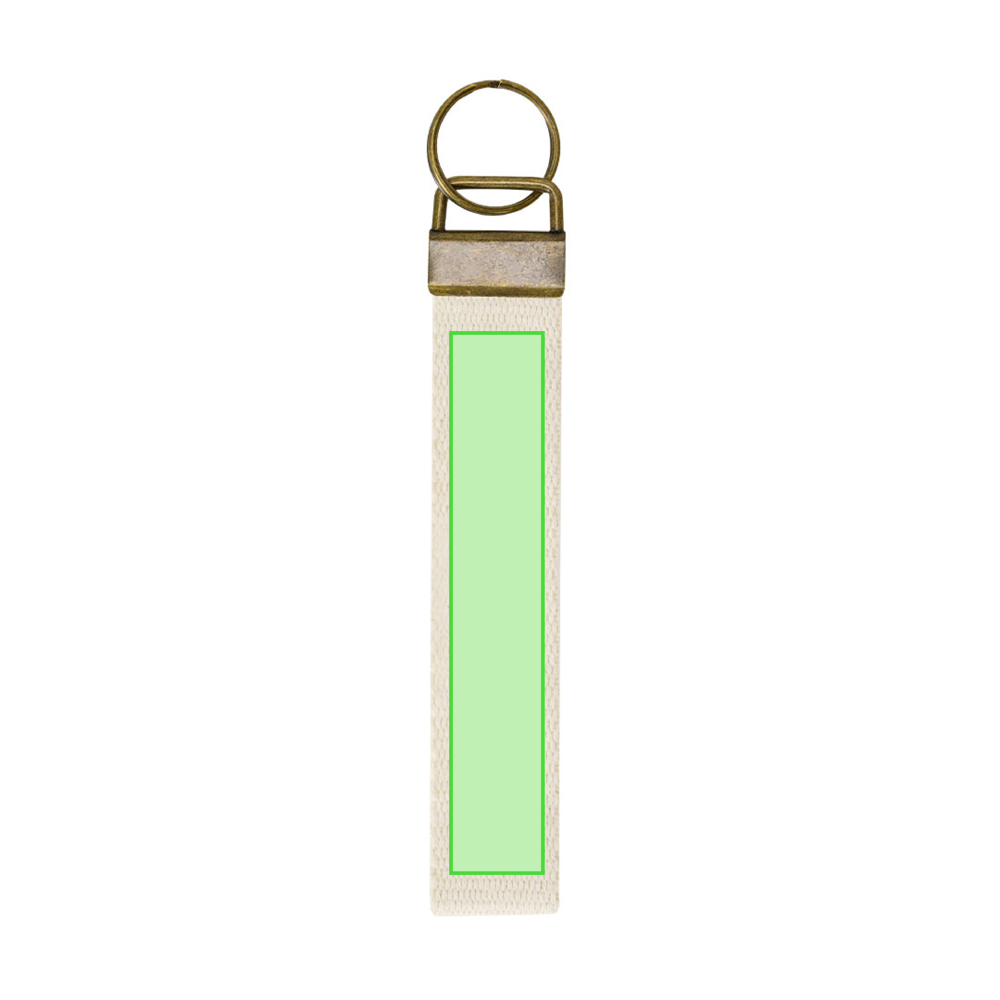 Klassieke sleutelhanger met polyester lint en metalen accessoires in verouderde metalen afwerking.