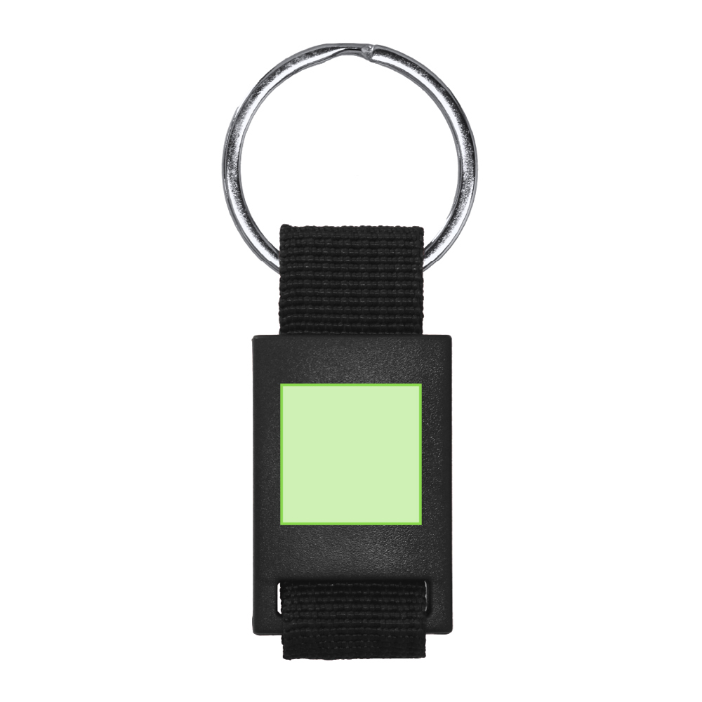 Leuk ontwerp sleutelhanger met gerecyclede PU-tape. Met een zwarte body in een matte afwerking.
