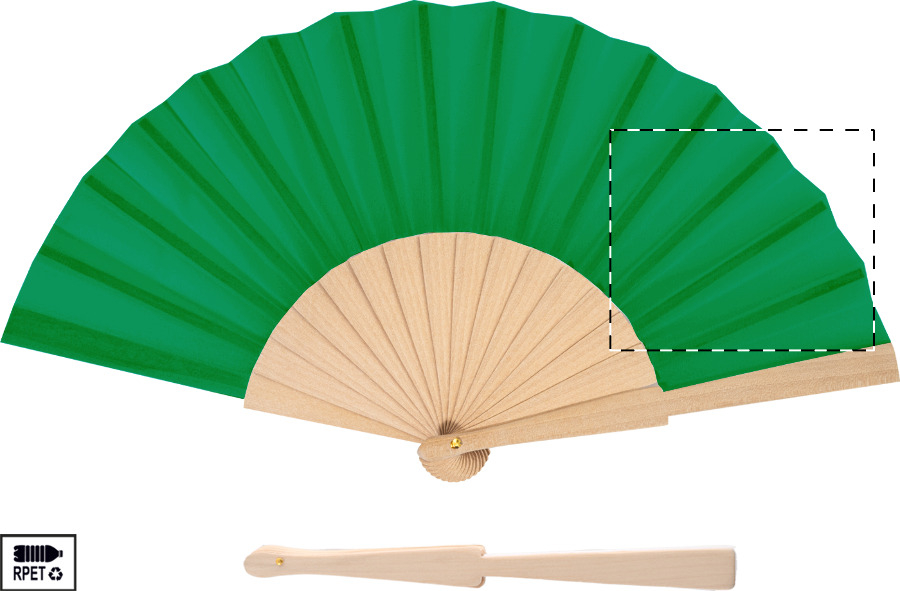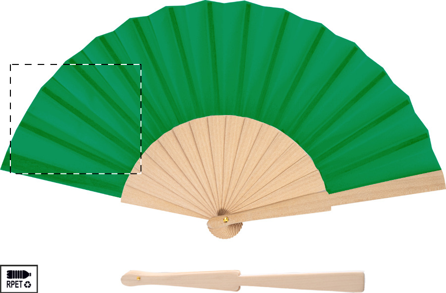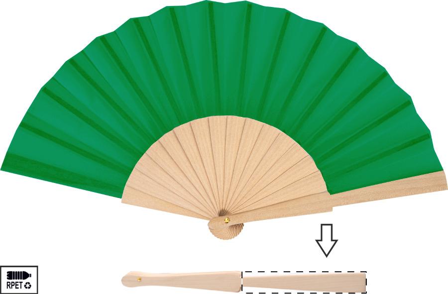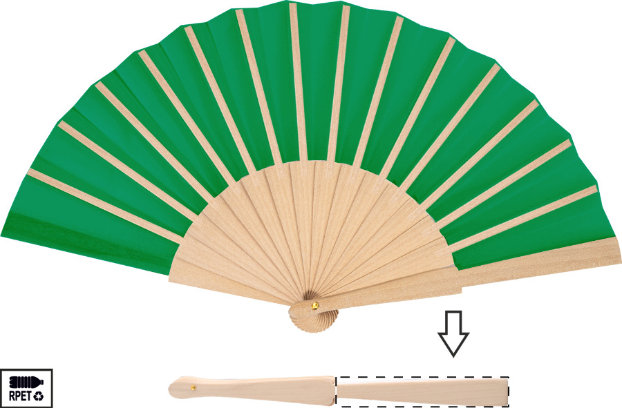 RPET polyester handwaaier met houten ribben.