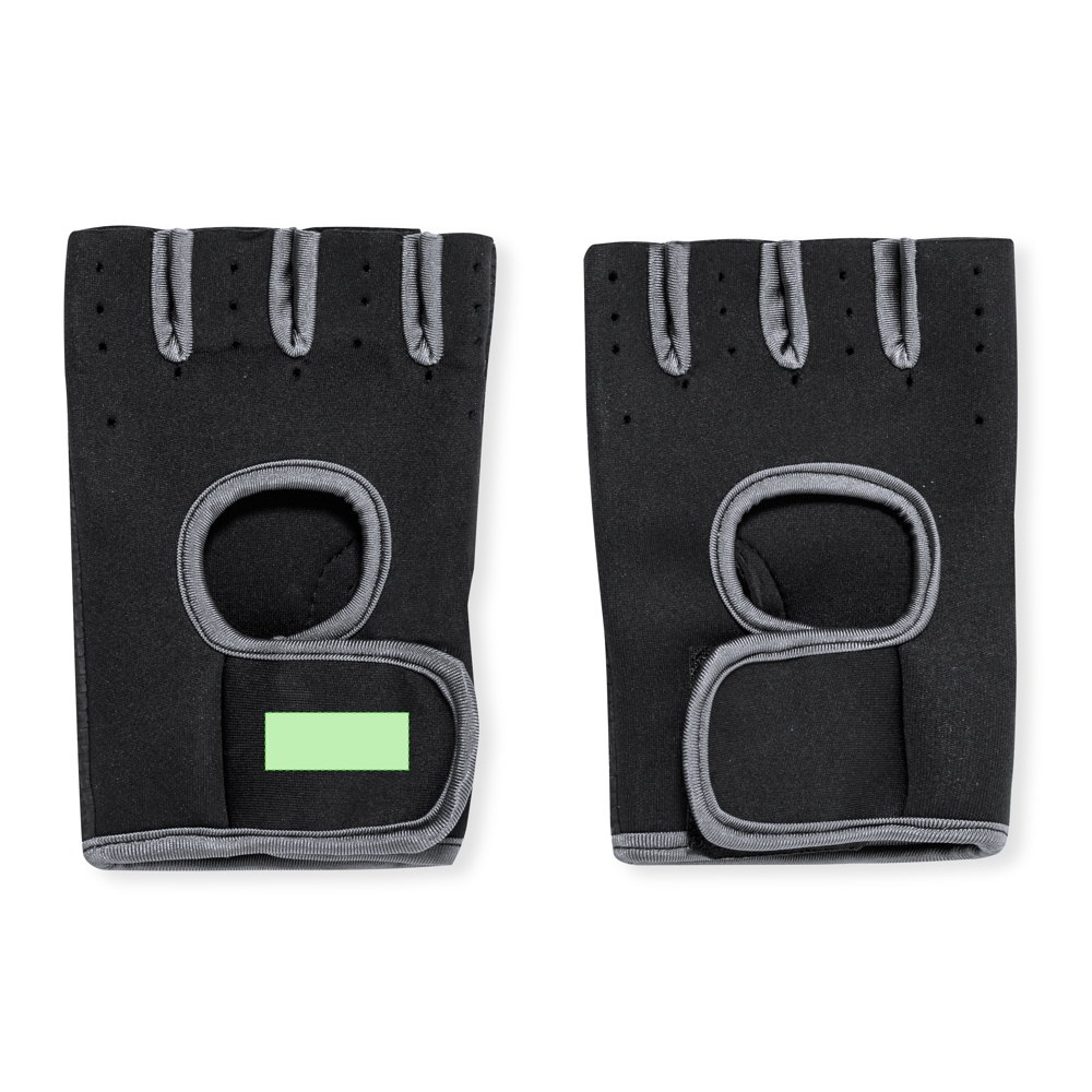 Sporthandschoenen van zacht polyester en neopreen lycra, een combinatie van stoffen die zorgt voor een tweede huid die zich aanpast aan de hand, met een klittenbandsluiting bij de pols. Deze handschoenen zijn comfortabel voor elke discipline dankzij het uitstekende ademende vermogen, dat wordt bereikt door het open vingerontwerp en de warmteafvoer aan de bovenkant, die ook een ruwe afwerking hebben voor een optimale grip. Verkrijgbaar in zwart met grijze stiksels, in de maten S-M en L-XL. Geleverd in een gerecycled zakje.