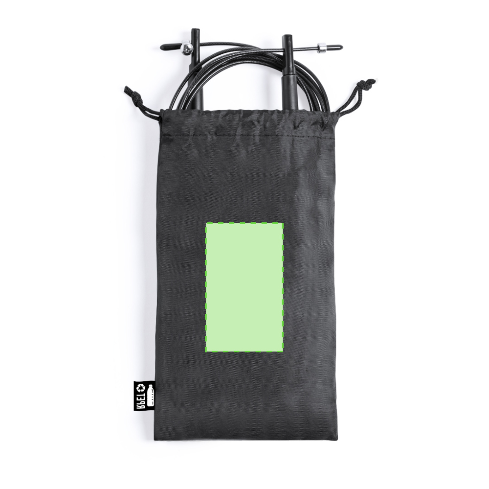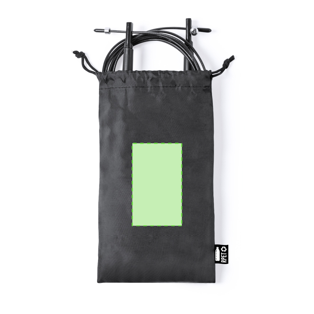 Verstelbaar sportspringtouw in 210D RPET zakje.