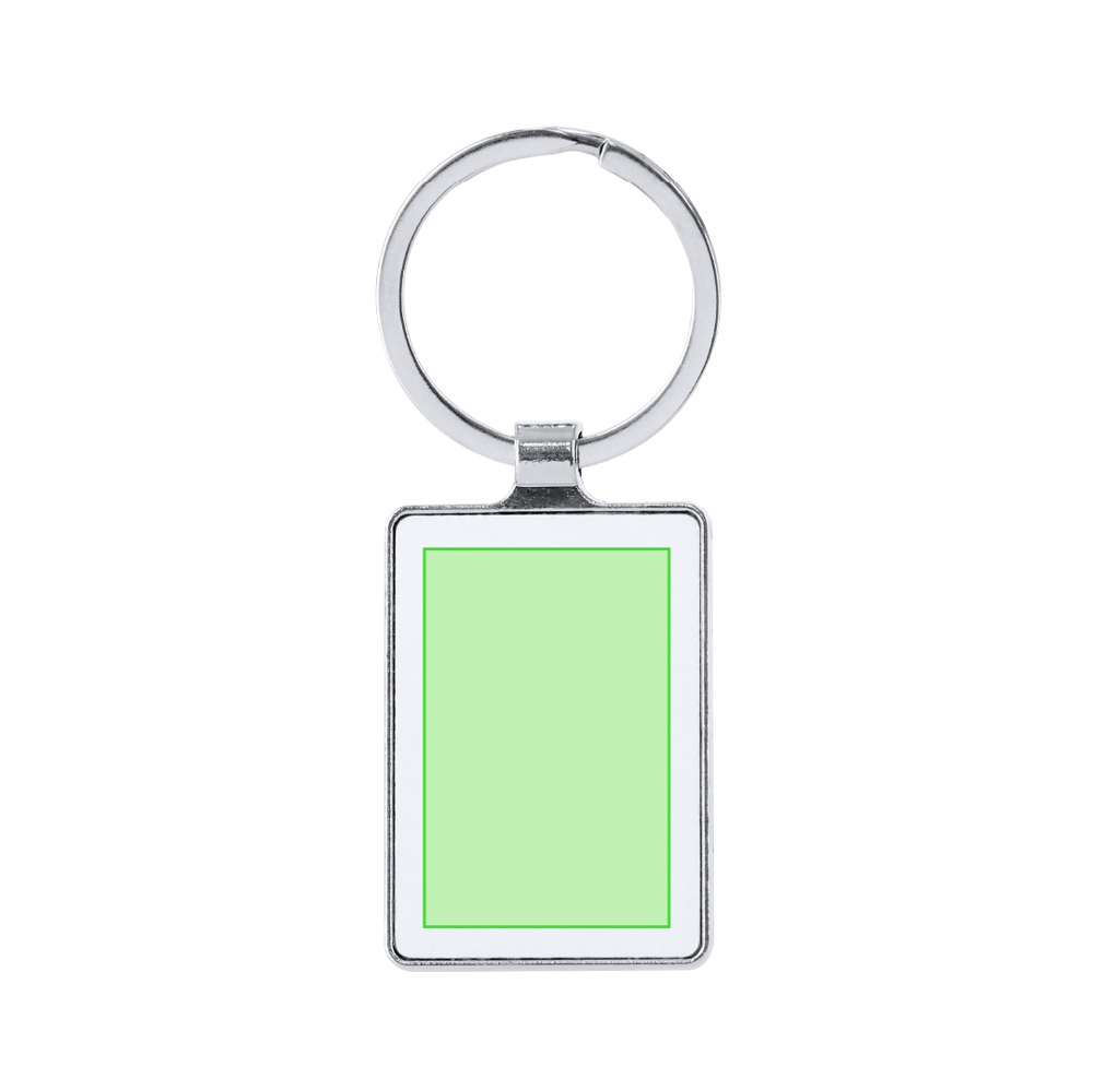 Sleutelhanger met metalen plaatontwerp en metalen ring. De plaat bevat een oppervlak dat ideaal is voor sublimatie.