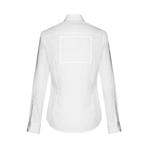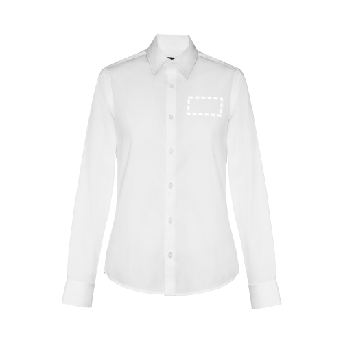 Dameshemd met lange mouwen van 68% katoen, 28% polyamide en 4% elasthaan (115 g/m²). Lange mouwen met 1 plooi en 1 knoop. Getailleerde taille met 2 coupenaden op de rug en sluiting met 7 bijpassende kleurknopen. Maten: S, M, L, XL, XXL