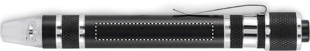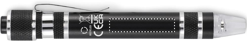 Gerecycled aluminium multitool in penvorm met zaklamp. Inclusief 3 sleuf- en 3 kruiskopschroevendraaiers. inclusief 4 knoopcel LR41 batterijen.