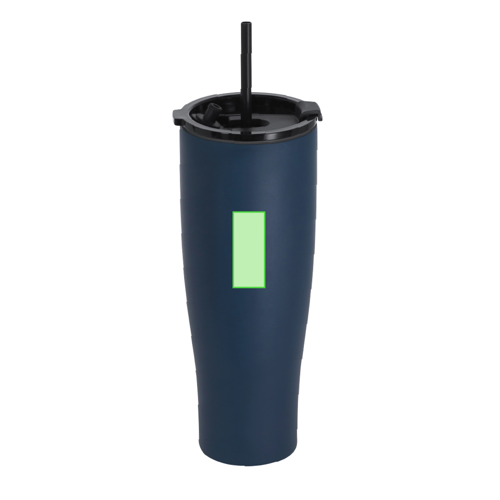 Thermisch vat met 900 ml capaciteit en dubbele wand. Gemaakt van gerecycled roestvrij staal. Het heeft een dubbel drinksysteem: gat met hermetische sluiting en geïntegreerd rietje, aangepast aan de gebruiksvoorkeuren. Met een hermetisch afsluitingssysteemdeksel. Inclusief praktisch draaghandvat, ideaal voor gemakkelijk transport in elke situatie. BPA-vrij. Met gerecycled roestvrijstalen badge.