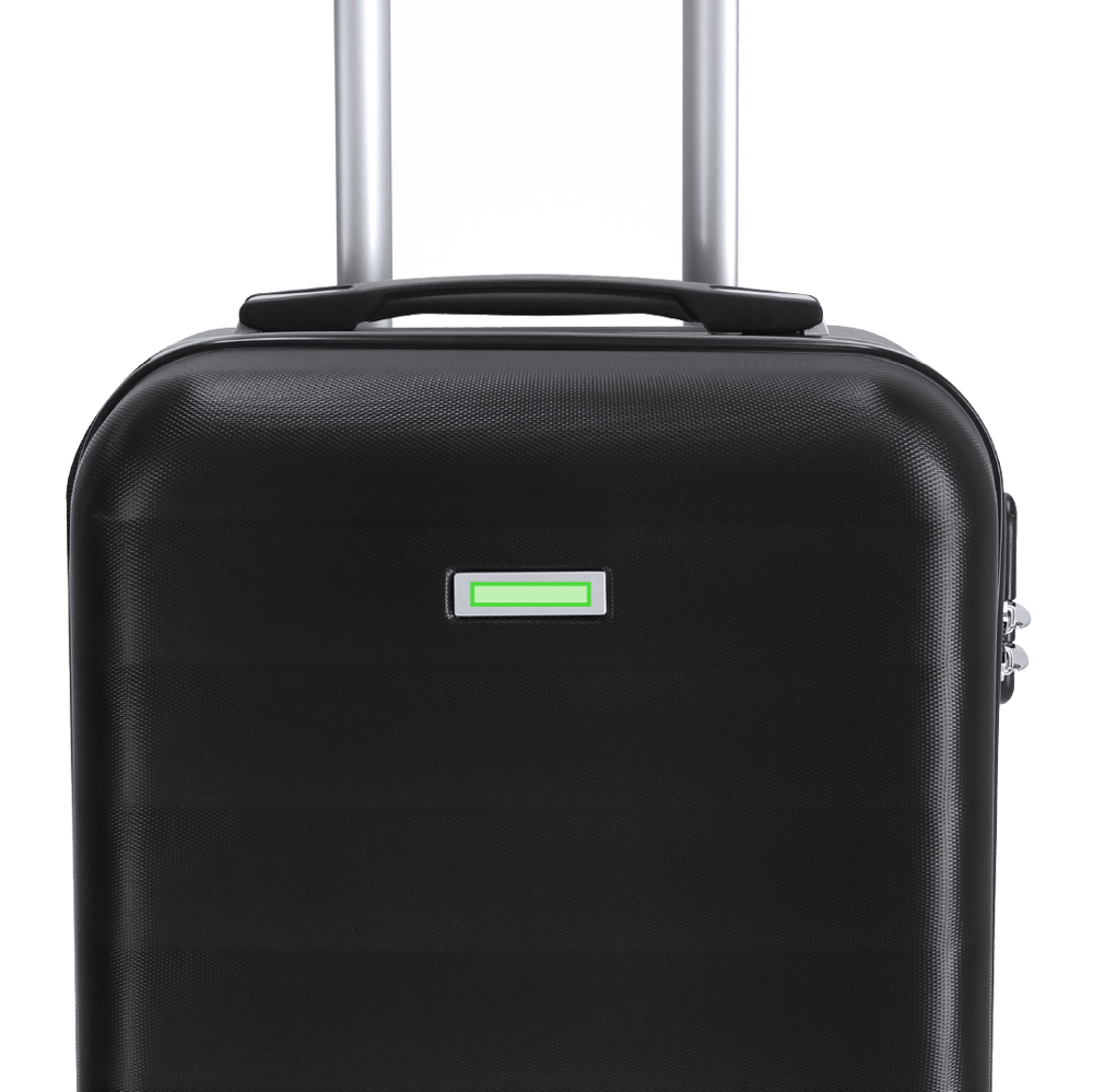 Praktische trolley met 4 afneembare draaiwielen, in stijve ABS. Dubbele ritssluiting met de trekker. Interieur met compartimenten en diverse items. Dankzij het compacte formaat en het verwijderen van de wielen is het meenemen van een trolley als handbagage geen probleem. Inclusief tas om de wielen op te bergen.