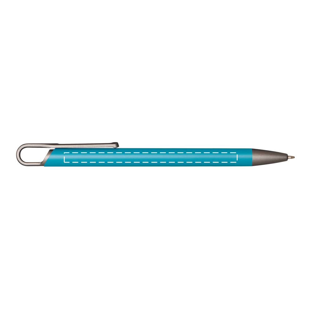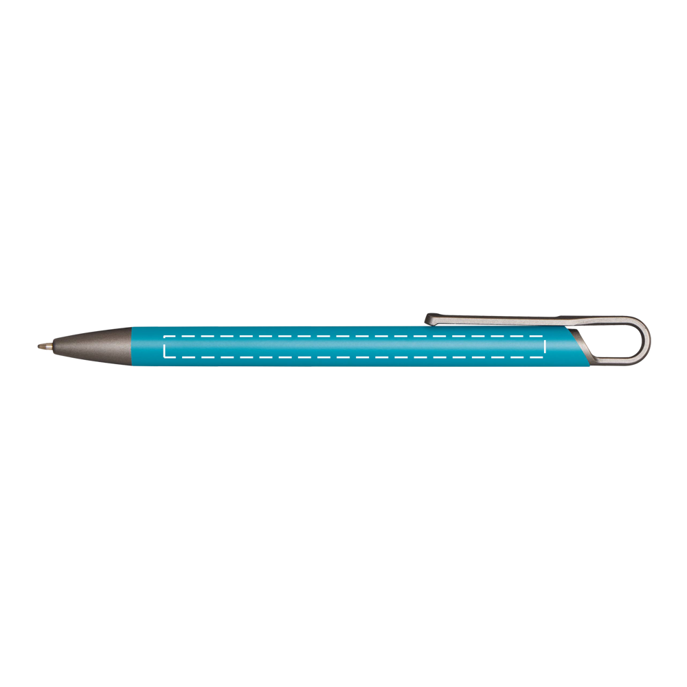 Aluminium balpen (94% gerecycled), met een innovatieve clipvorm die opvalt door zijn uniekheid en elegantie.