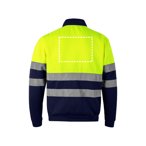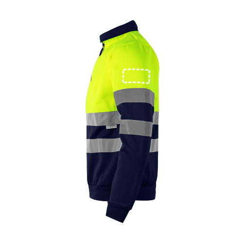 Tweekleurig sweatshirt (300g/m²) van polyestervlies (100%). Met hoge kraag en halve rits. Geribde manchetten en zoom. Reflecterende strepen op de romp en mouwen. Product in overeenstemming met EU-verordening 2016/425, gecertificeerd door EN20471 en klasse Nº 1. Maat: 4XL,5XL