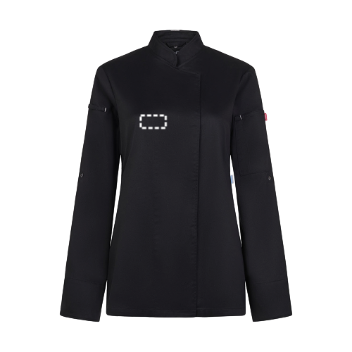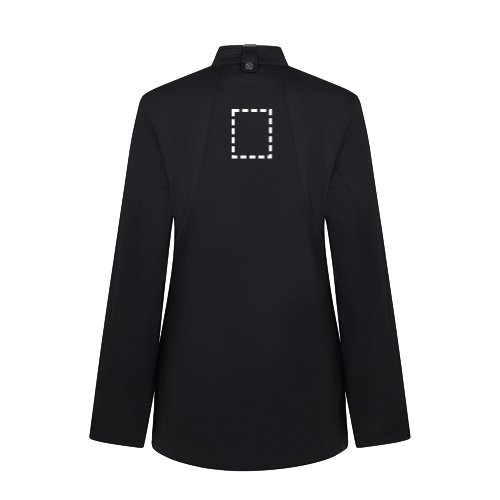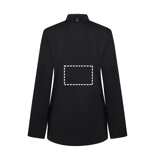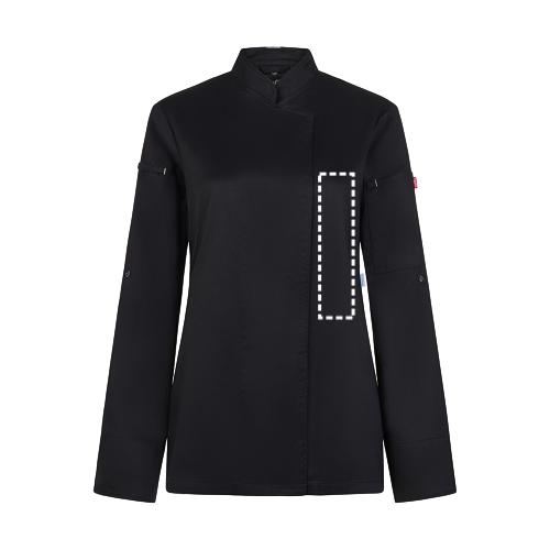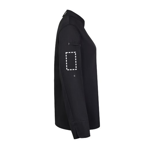 Keukenschort (190 g/m²) voor dames, van katoen (35%) en gerecycled polyester (65%). Met een vrouwelijk, comfortabel ontwerp, vloeistofafstotende stof en een rug van ademend COOLMAX-materiaal. De schort heeft een zijsluiting, verborgen drukknopen aan de voorkant, verstelbare mouwen en een kraag met een knoop voor een schort. Een zak op de linkermouw, met elastiek. Maten: XS, S, M, L, XL, 2XL
