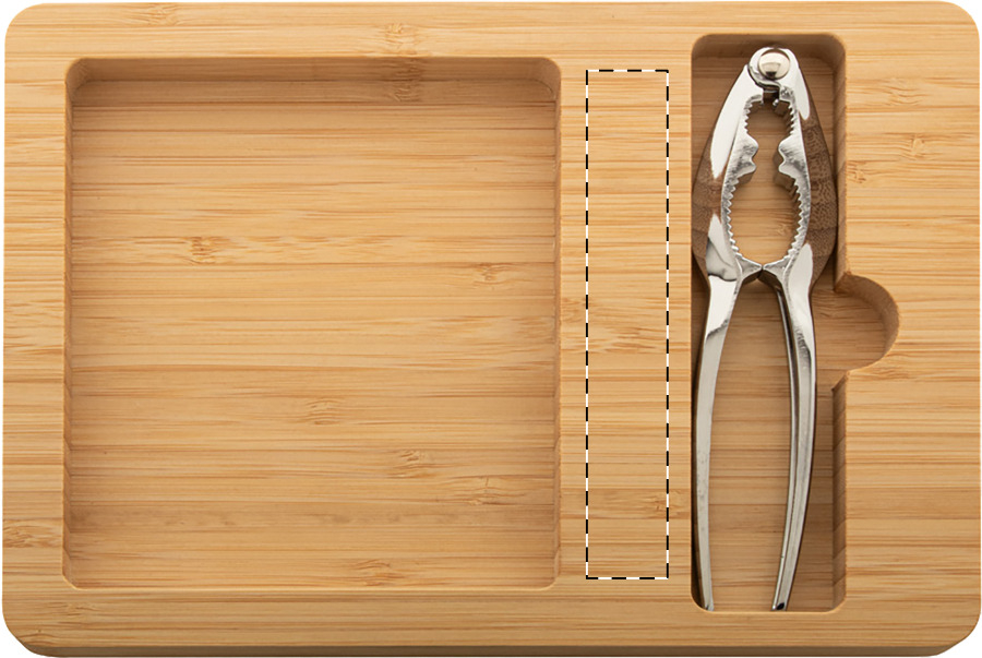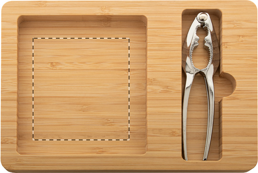 Notenkraker set met bamboe dienblad en metalen notenkraker. In kraftpapier doos.