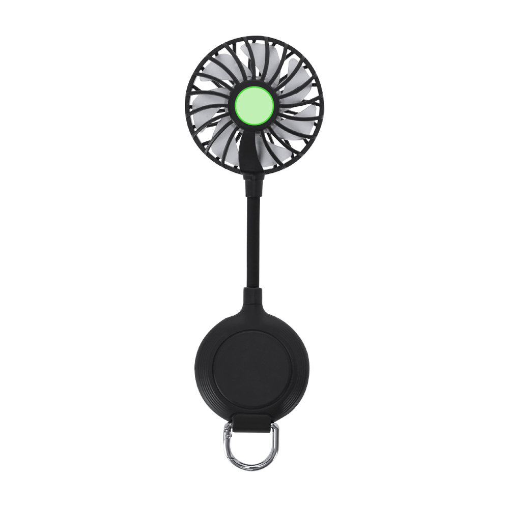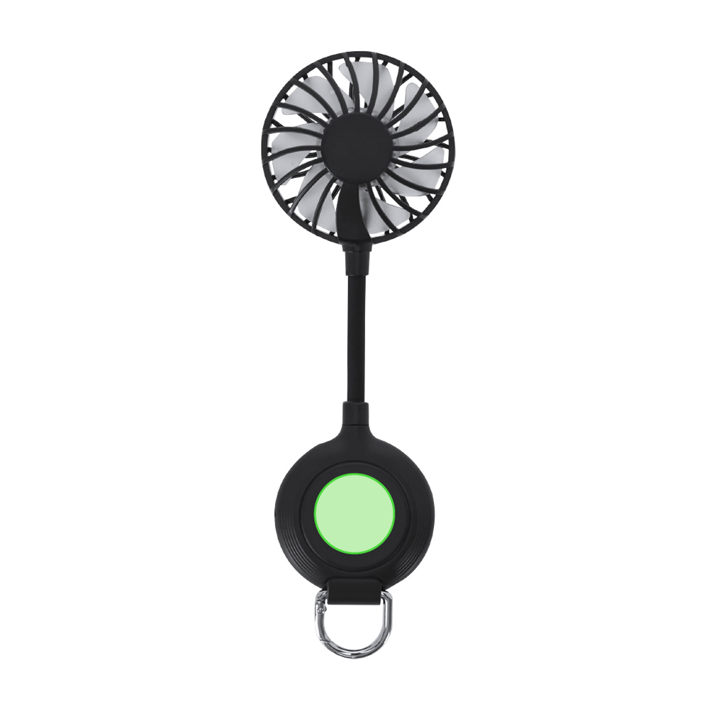 Ventilator met ABS-body en glanzende afwerking. Mes in zachte EVA. Met aan- en uitknop aan de zijkant, zaklamp bovenop met LED-lampen, en onderaan zit een praktische karabijnhaak in dezelfde kleur als de bladen voor gemakkelijk transport - werkt met 2 AA-batterijen, niet inbegrepen.