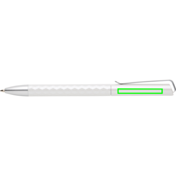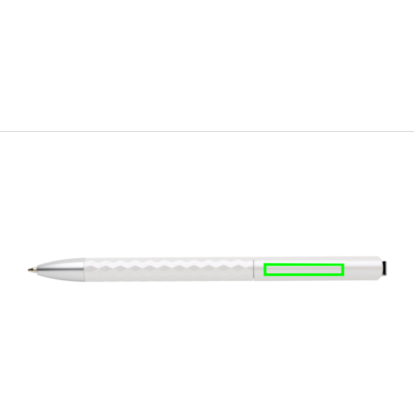 Unieke balpen met metalen clip met fascinerend diamantpatroon. Inclusief Duitse Dokumental® inktvulling in blauw (ca. 1200 m schrijflengte) met TC-ball voor ultra-vloeiend schrijfplezier. De pen is vervaardigd uit 38% gerecycled ABS.