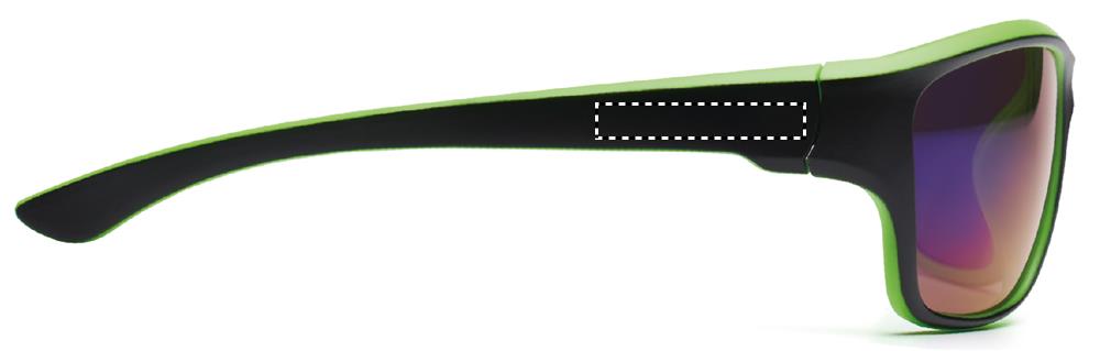 Deze zonnebril leent zich goed voor bedrukking met logo, tekst of huisstijl en past daardoor perfect binnen promotionele campagnes.